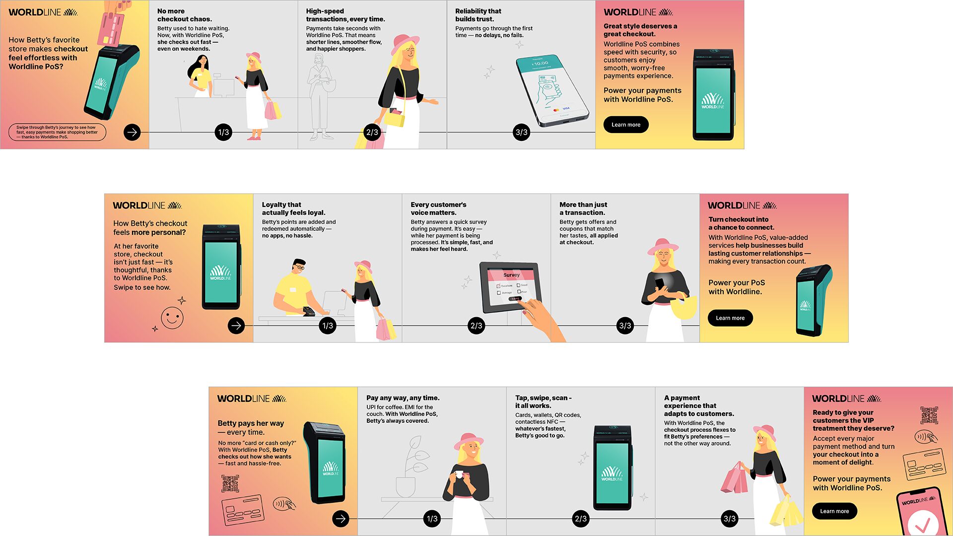 Our work provides visual support for high-impact projects, ensuring consistency with Worldline’s global brand guidelines, clarity of message, and strong aesthetic standards.